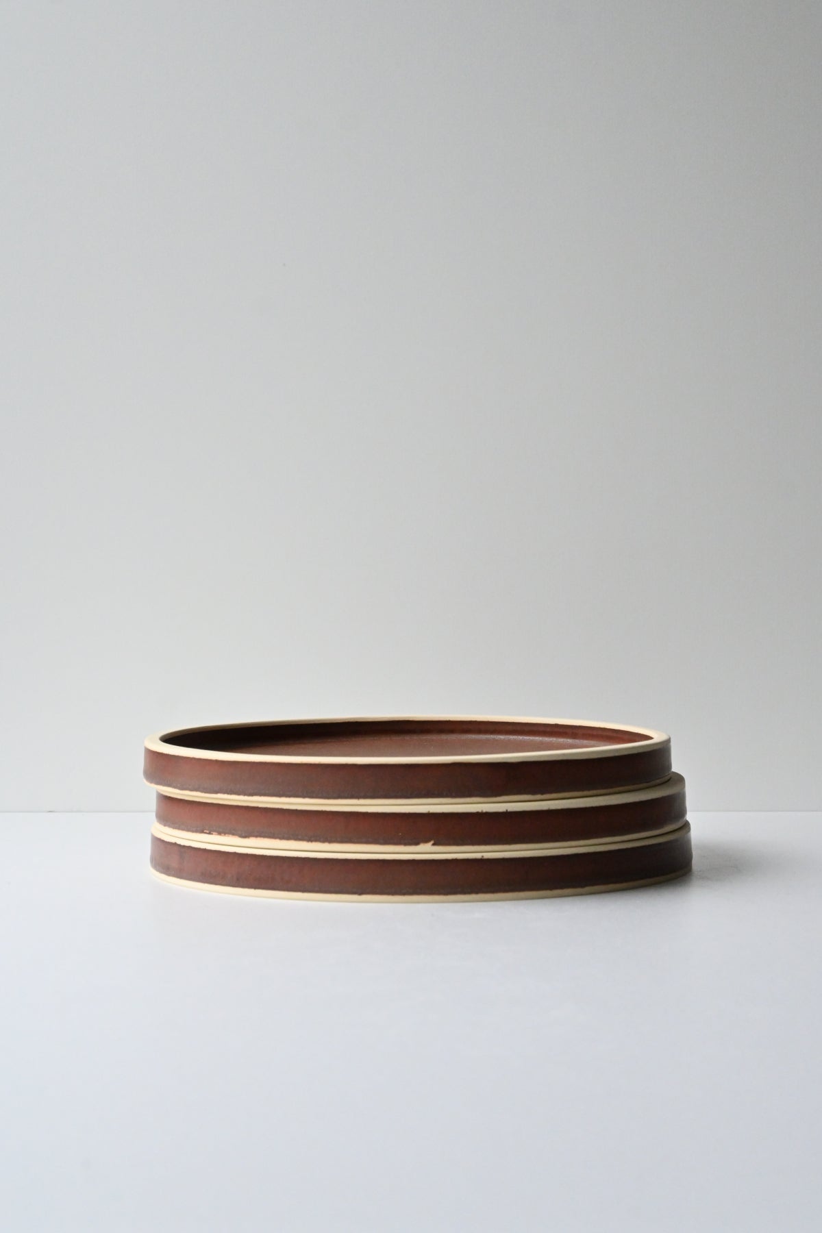 Its minimalist design creates a modern and sophisticated look, while the unglazed edges add a subtle accent that enhances even the simplest dishes. The thick edges make the plates easy to stack and also create an appealing profile when viewed from the side.